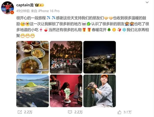 点击输入图片刻画(最多30字)在走访为止后,马龙亦然记忆了本次走访。他在外交平台上发文默示:“很沸腾的一段旅程,感谢这些天解救咱们的一又友们,也收到好多和顺的饱读舞。这一次让我解锁了好多新的方位,意志了好多新的一又友,也吃了好多纯正的小吃,固然还有好多的礼物。百鸟争鸣,咱们北京再采集。”